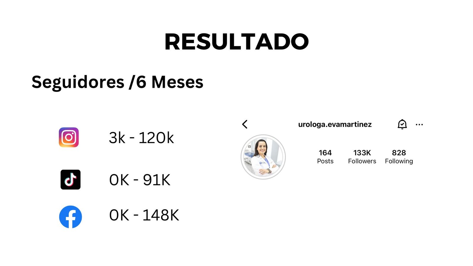 Contexto: Eva tenía 1,000 seguidores. 6 meses después, ya tenía +100,000 seguidores en Instagram y +140,000 seguidores en Facebook, y obvio, creció su consulta gracias a la estrategia que le hicimos.